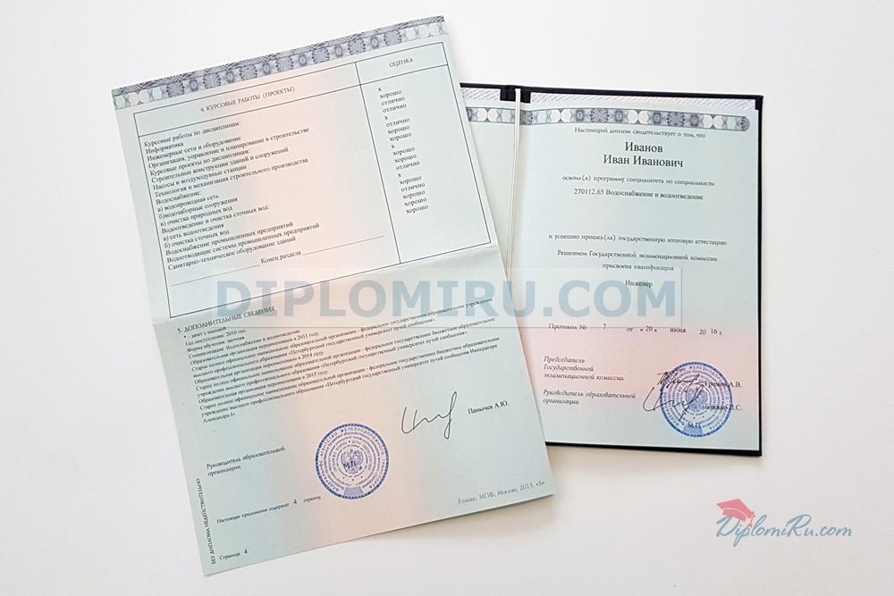 У нас Вы можете купить диплом о высшем образовании нового образца. В работе используем бланки со всеми защитными элементами. Обратите внимание, то нумерация бланка и приложения может отличаться. Заполняем как по государственным стандартам, так и по образцам документов, реально выданных тем или иным учебным заведением. На фото выше представлены заполненные корочки - точная копия оригинального диплома, выданного одним из университетов.