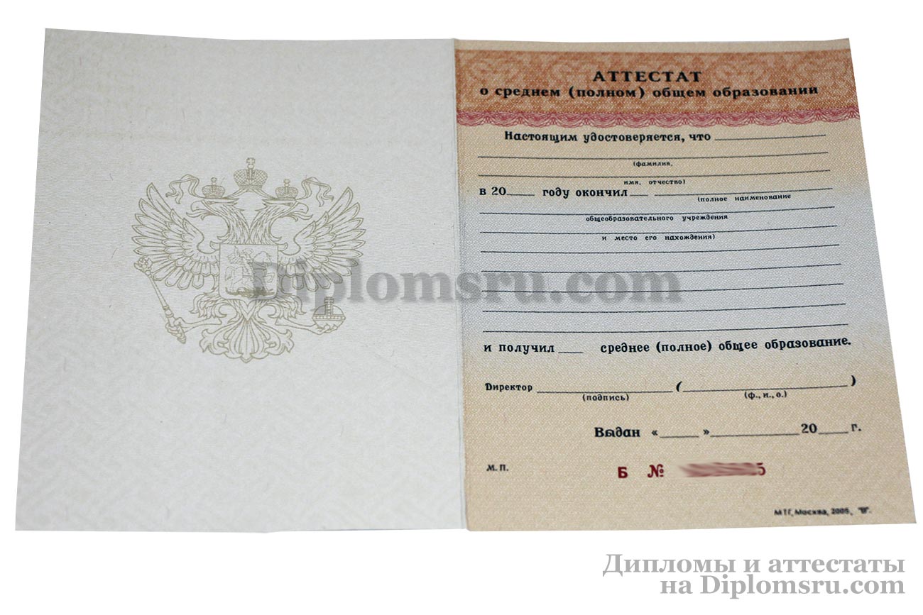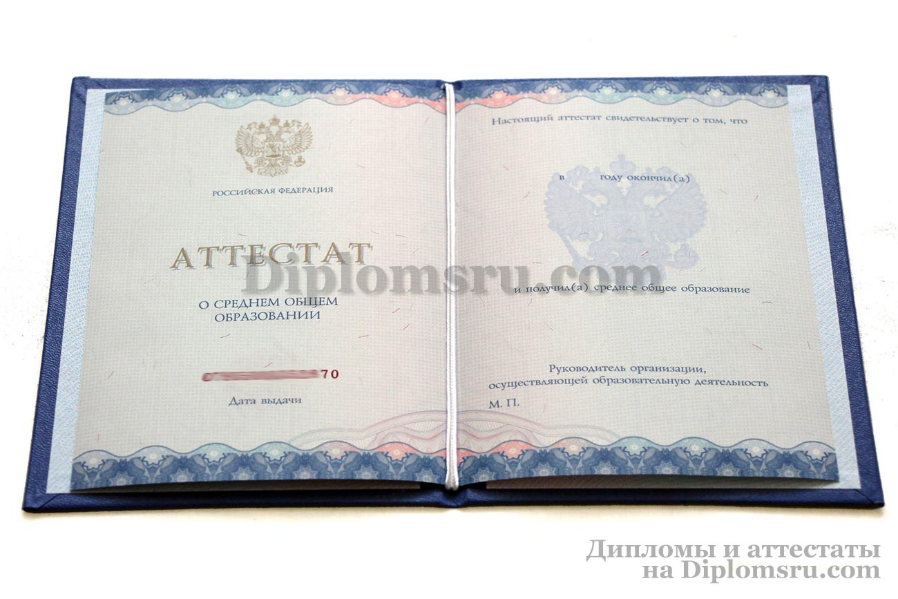 Диплом о среднем образовании 2014-2026 без QR кода с приложением, в твердой обложке. «Гознак». |