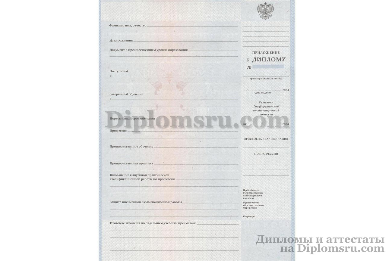 Приложение к диплому ПТУ (при покупке отдельно) 2014-2026 года |