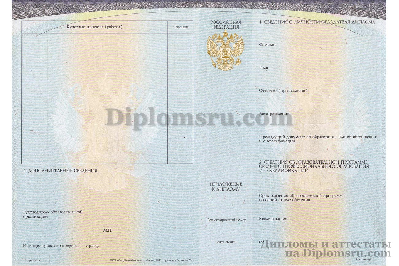 Приложение к диплому ССУЗа (при покупке отдельно) 2014-2026 года |