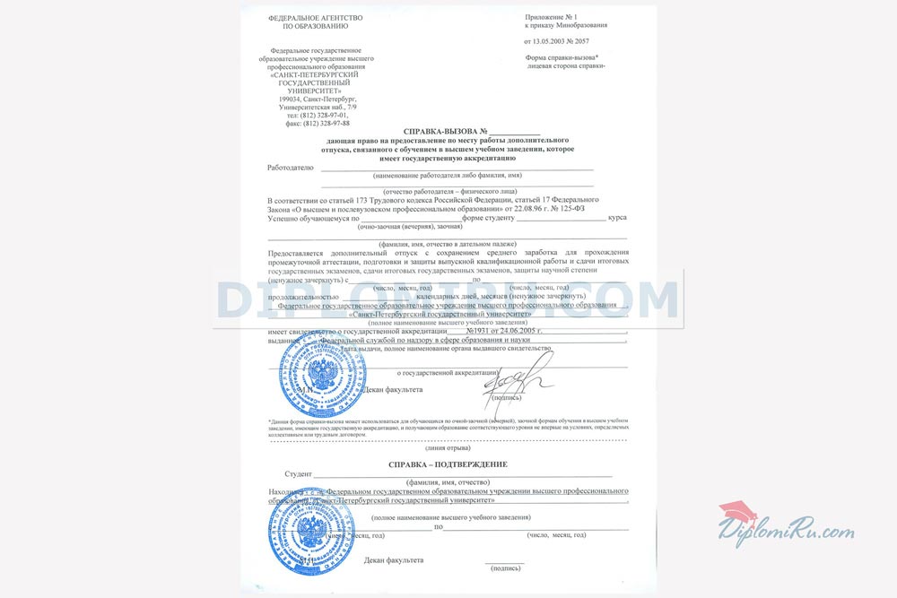 Справка — вызов на сессию |